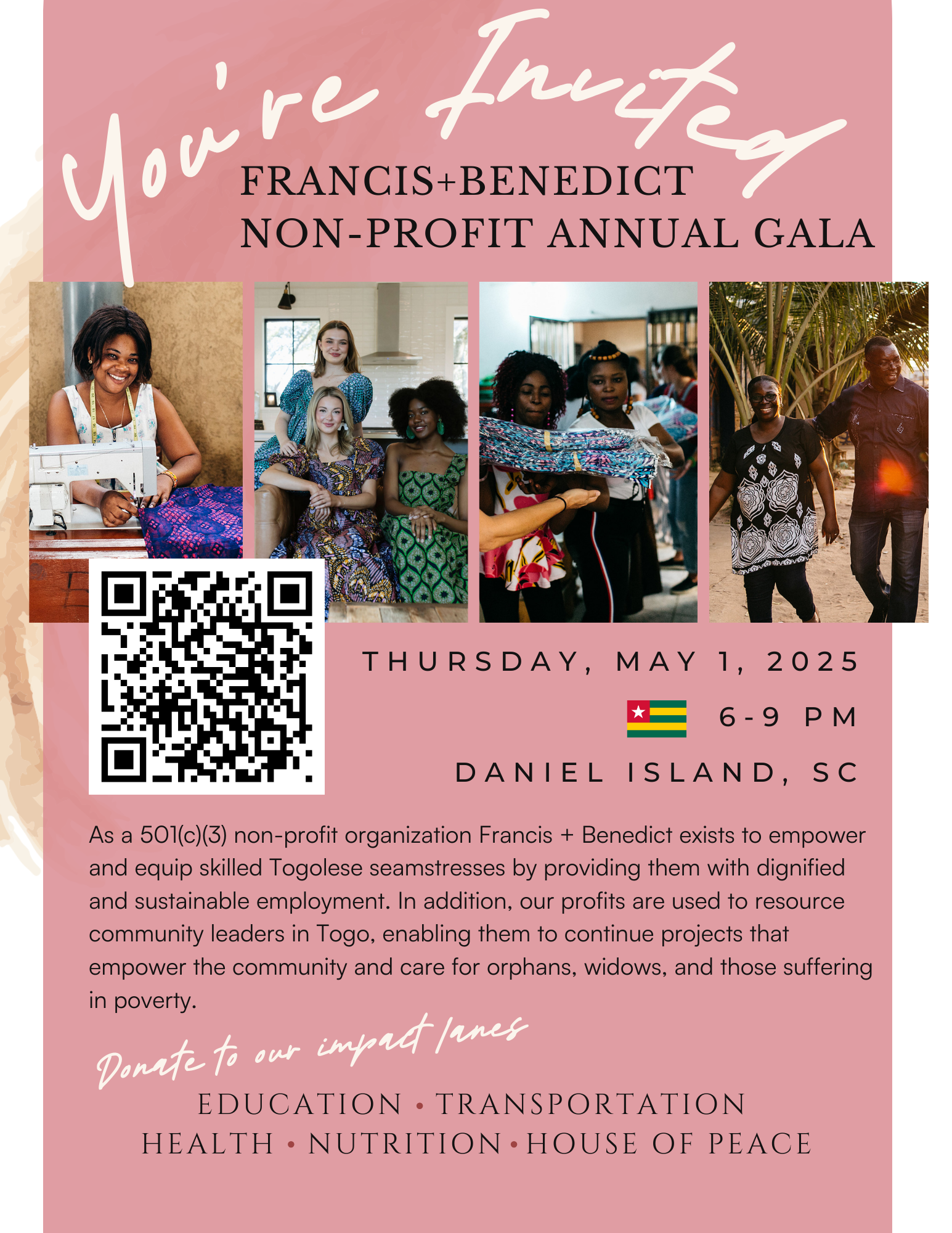 Friday, May 1 on Daniel Island, you can join the celebration of everything that was accomplished this year and give back to those in Togo. Tickets to the Gala are on sale now and can be purchased here.